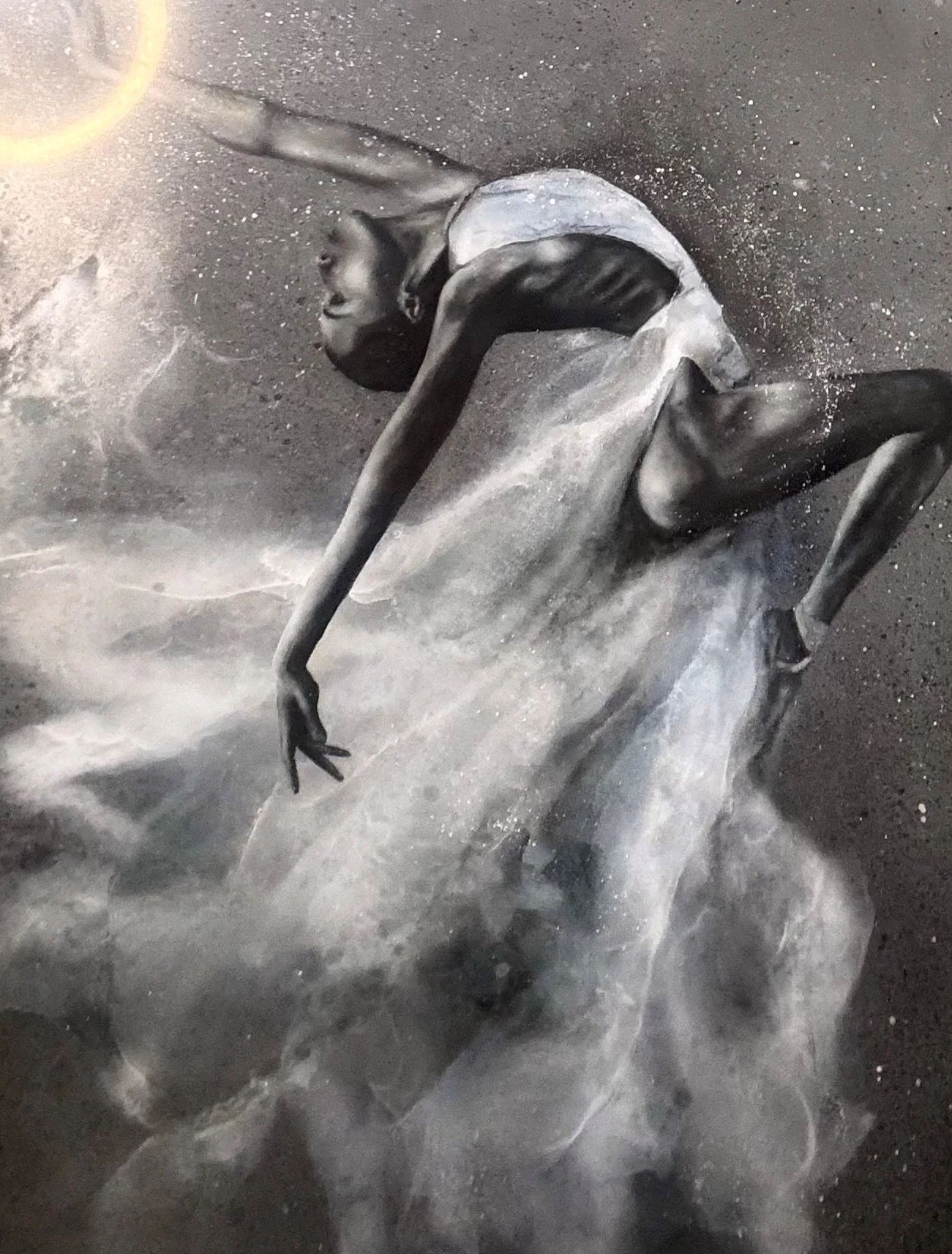 Diese Kollektion ist mein ganzer Stolz. Hier vereine ich verschiedene Techniken, um Tänzerinnen in Bewegung einzufangen – elegant, anmutig, lebendig. Die Basis bildet eine fein ausgearbeitete Malerei, doch das eigentliche Highlight ist das Kleid der Tänzerin: In mehreren Schichten aus Resin, Alkoholtinten und Ölfarben entsteht ein fließender, fast schwereloser Stoff, dessen Bewegung spürbar wird. Durch die transparente Tiefe der Schichten ergibt sich ein subtiler 3D-Effekt, der das Bild lebendig macht. Diese Technik ist komplex, erfordert höchste Präzision und hochwertigste Materialien. Jedes Werk muss zusätzlich aufwendig geschliffen und poliert werden – doch genau das macht jedes Stück zu einem exklusiven Kunstwerk.