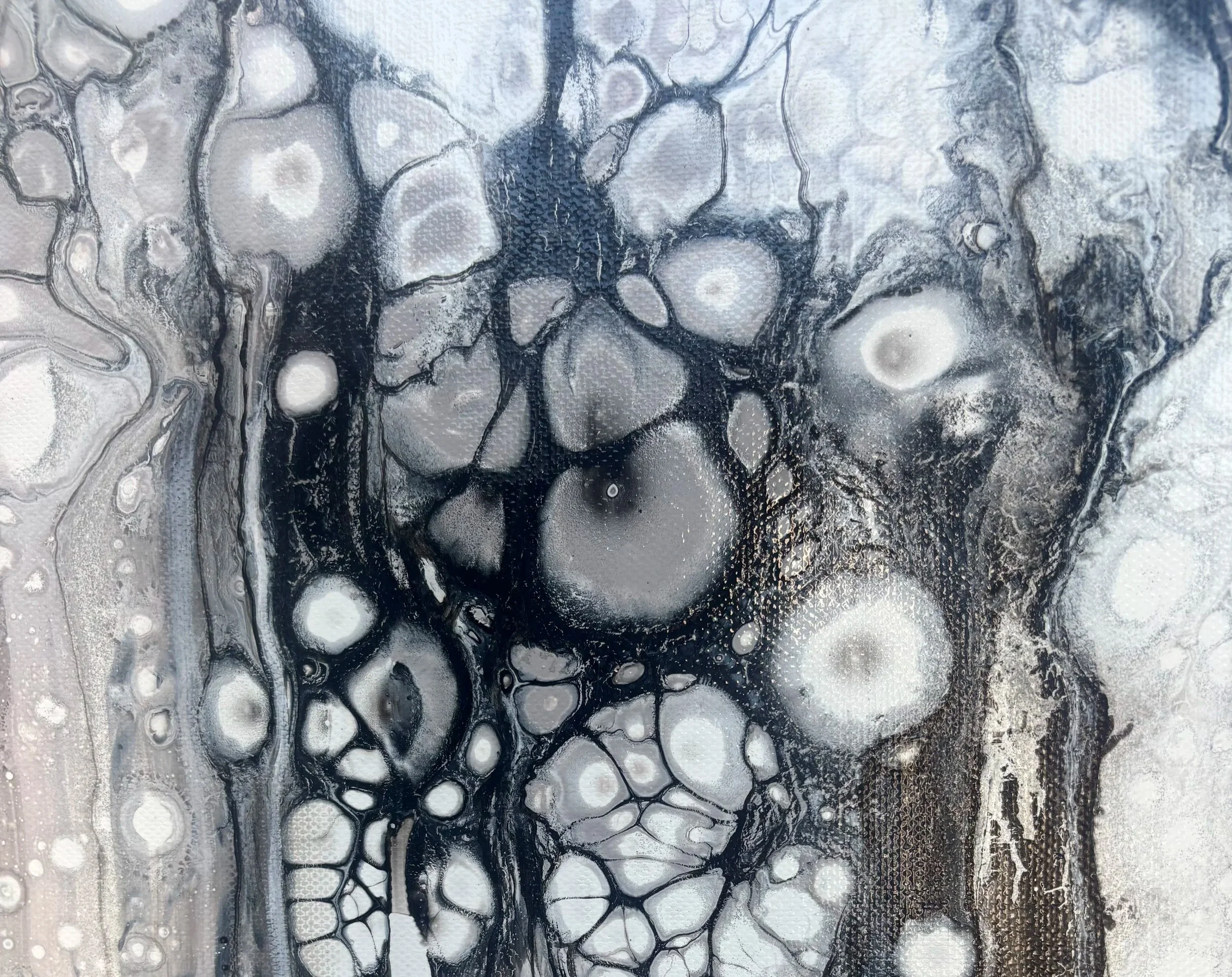 Diese Kollektion zeigt die faszinierende Dynamik flüssiger Acrylfarben, die in einem fein abgestimmten Zusammenspiel aus Technik, Intuition und meiner eigenen Pouring-Medium-Rezeptur über die Leinwand fließen. Diese besondere Fluid-Art-Technik lebt vom Zufall, ist jedoch alles andere als willkürlich: Konsistenz, Zellbildung und Farbfluss erfordern Fingerspitzengefühl und Erfahrung. Jeder Guss ist ein Balanceakt – sensibel gesteuert, doch stets offen für das Unerwartete – und macht jedes Werk zu einem lebendigen, nicht wiederholbaren Unikat.
